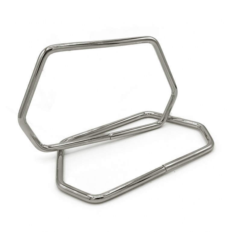 Manico in metallo di alta qualità per la realizzazione di borse e pochette.lunghezza massima 11,5cm ca altezza 7cm ca Spessore 5 mm ca.